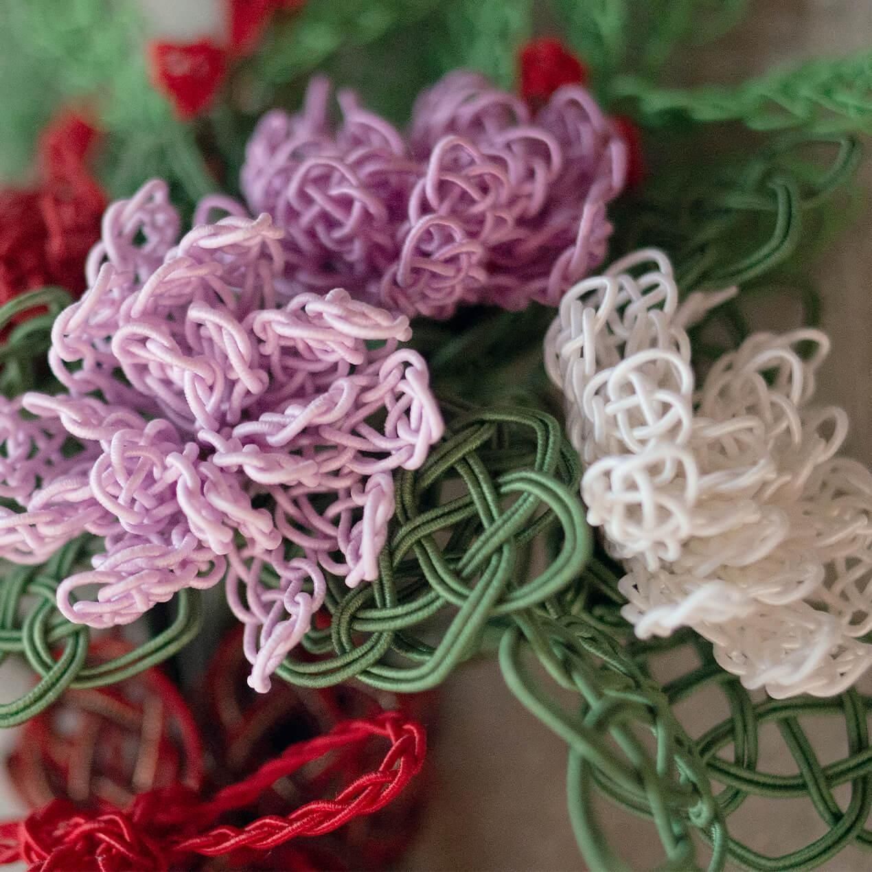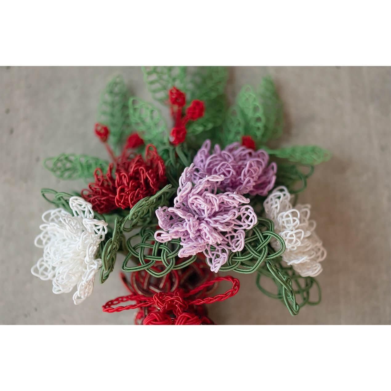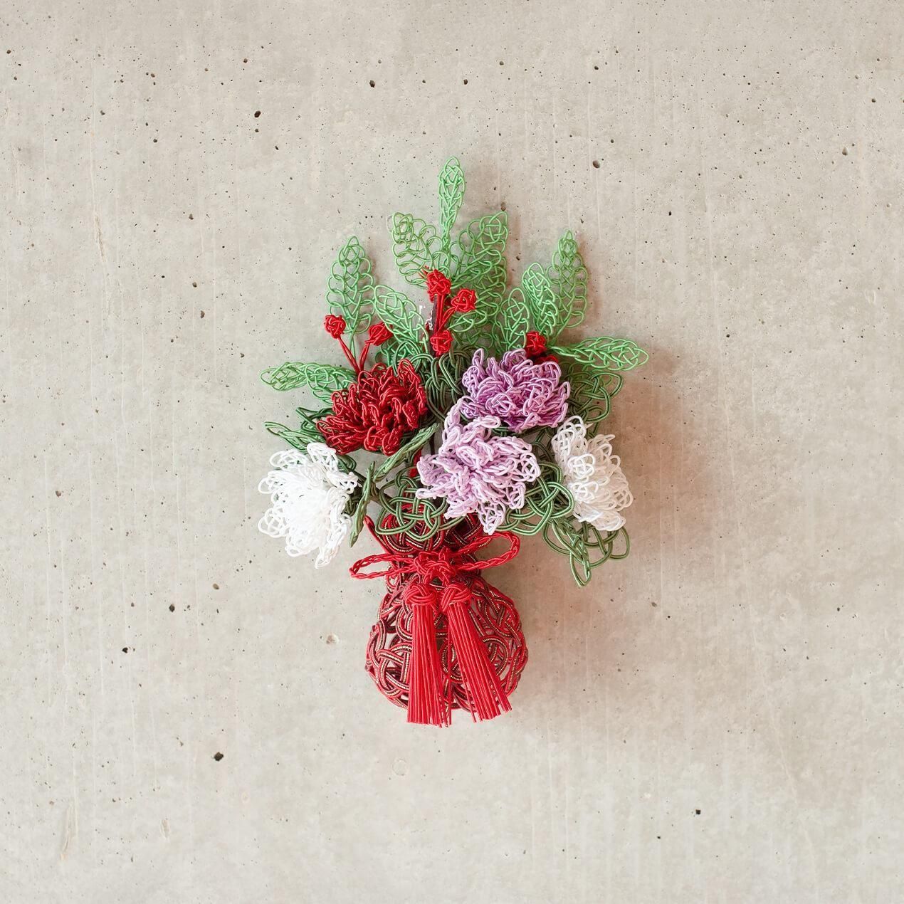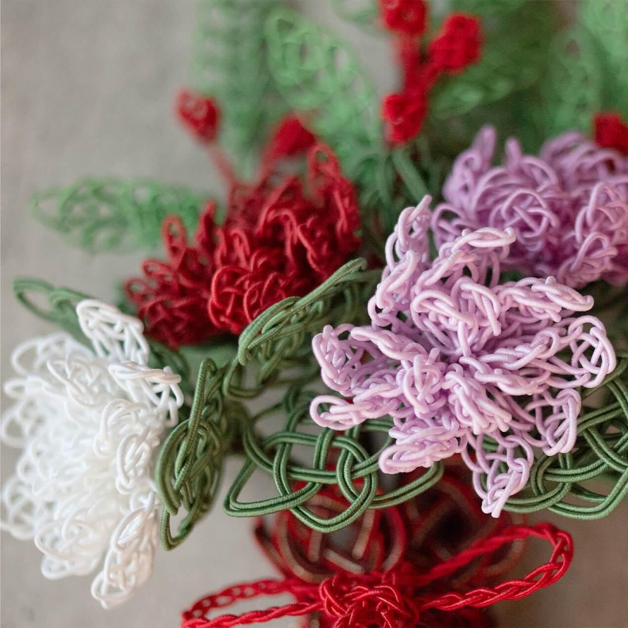 ひとつひとつ丁寧に結ばれた菊の花と茱萸の実の水引細工は、まるでブーケのよう。